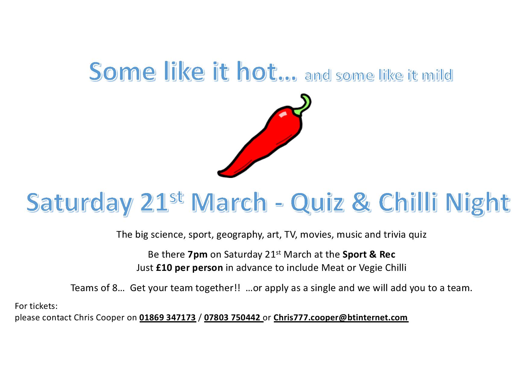Saturday, 21st March: SRC Quiz & Chilli Night
