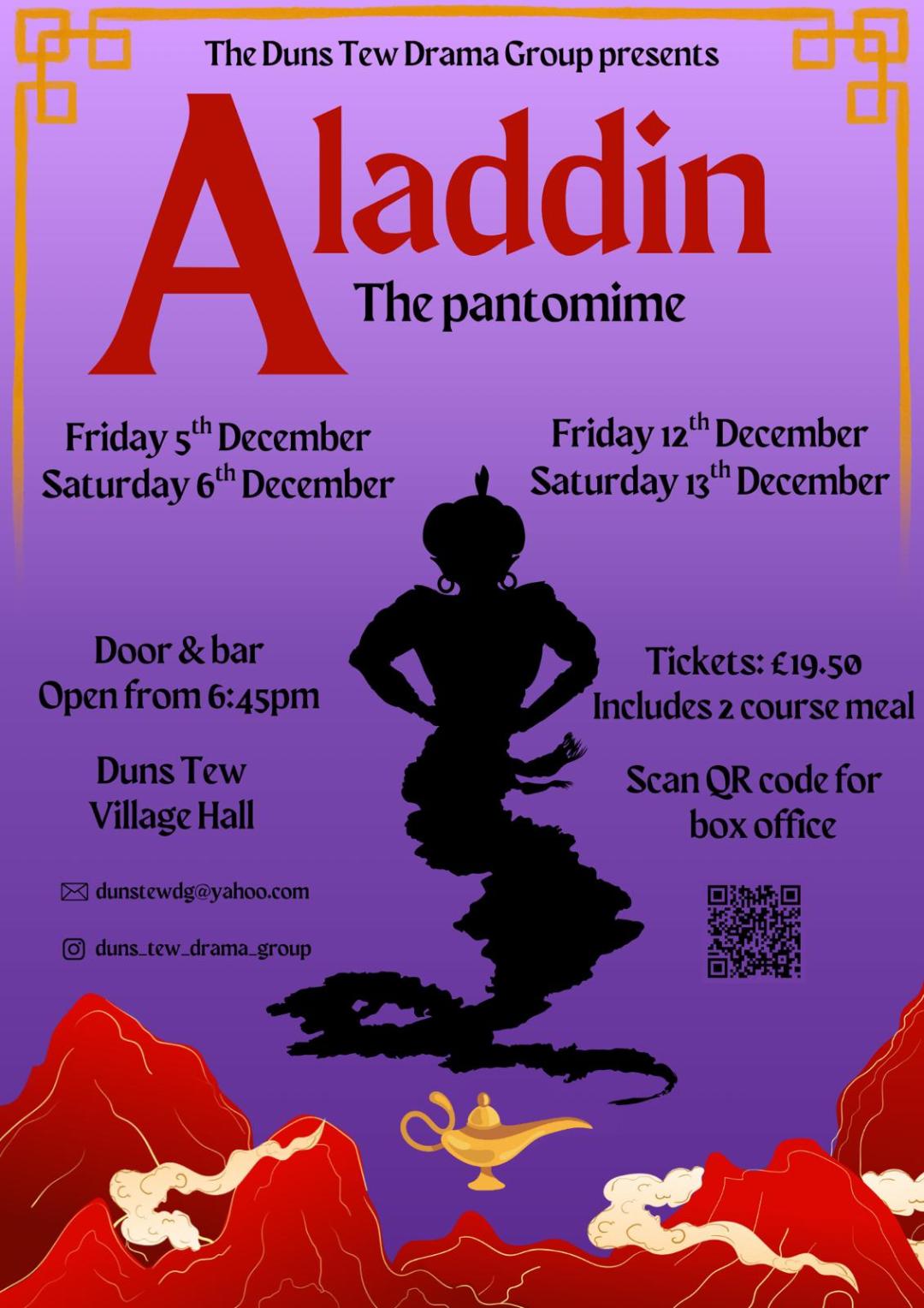 Fridays, 5th & 12, Saturdays, 6th & 13th December: Duns Tew Aladdin panto