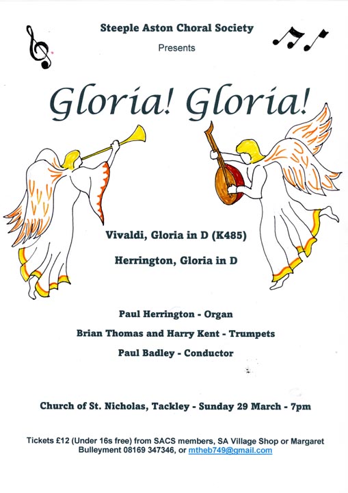 There’s to be a concert at St Nicholas Church, Tackley on Saturday, 21st  February at 7.00pm