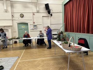 Some wonderful front door wreaths were made with judicious assistance or advice from Lynn. A thoroughly enjoyable morning and very productive, and we had some mince pies courtesy of Hildy. What’s not to like!!