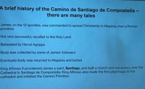- Hildy Frenken completed her walk along the Camino de Santiago. She had encountered some cold, wet weather and not all her accommodation has been comfortable or welcoming, but she is soldiered on. We heartily congratulated her.